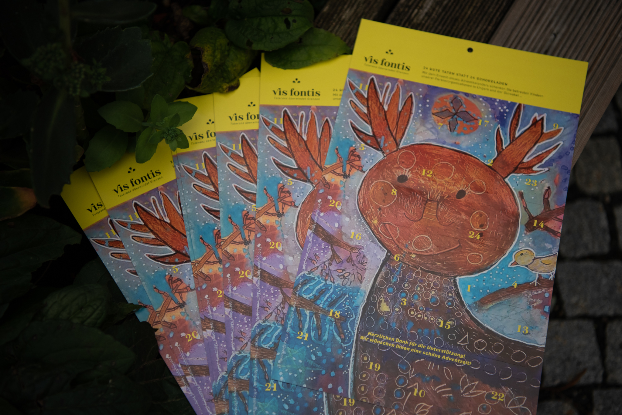 Aus diesem Grund haben wir für Freunde, Förderer und Interessierte einen bunten VisFontis-Adventkalender gestaltet. Statt Schokolade verbirgt sich hinter jedem Adventfenster ein karitatives Winterprojekt. Unser Ziel ist es, diese Projekte mit dem Erlös unserer Adventkalender-Aktion in den kommenden Monaten zu verwirklichen.