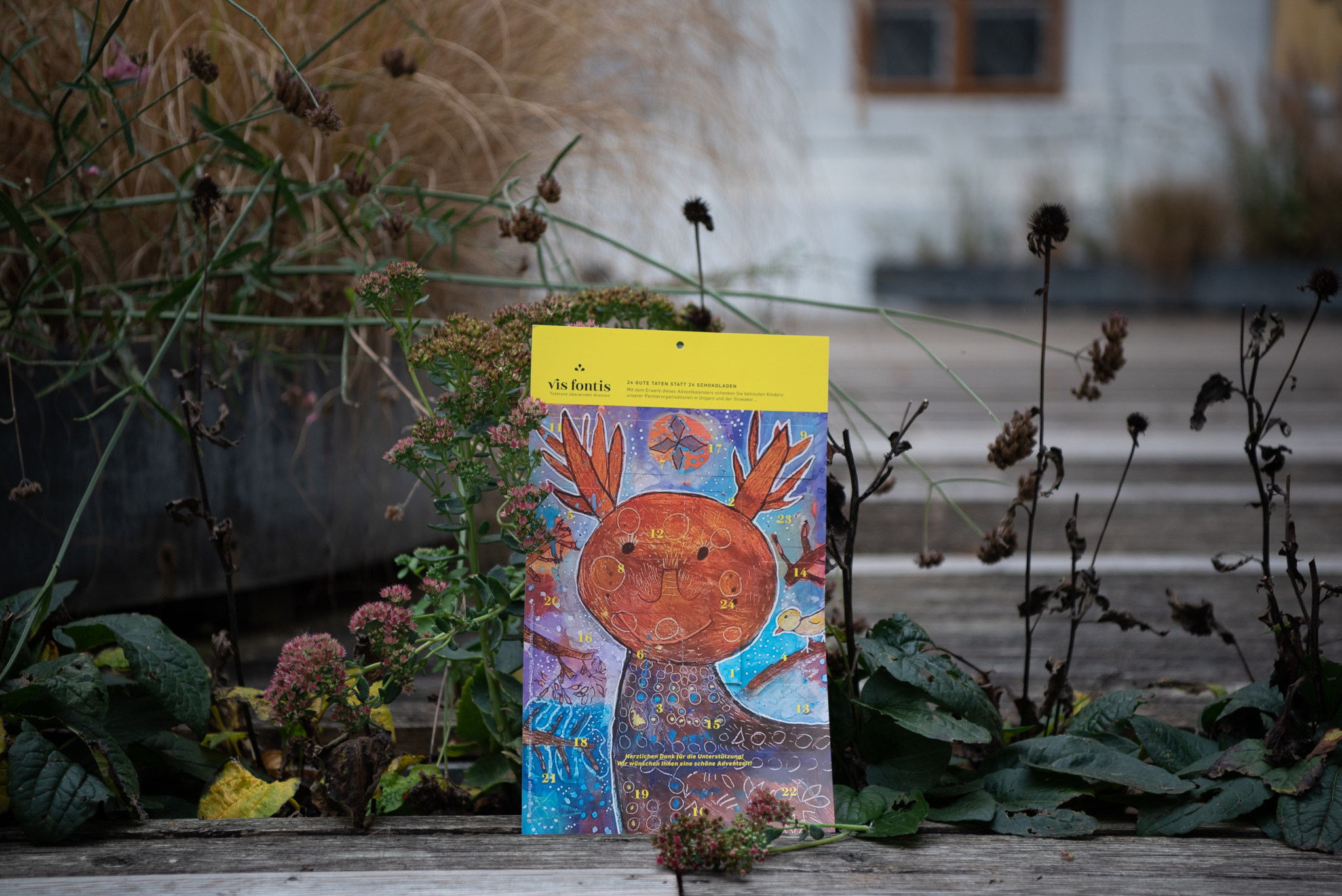 Aus diesem Grund haben wir für Freunde, Förderer und Interessierte einen bunten VisFontis-Adventkalender gestaltet. Statt Schokolade verbirgt sich hinter jedem Adventfenster ein karitatives Winterprojekt. Unser Ziel ist es, diese Projekte mit dem Erlös unserer Adventkalender-Aktion in den kommenden Monaten zu verwirklichen.